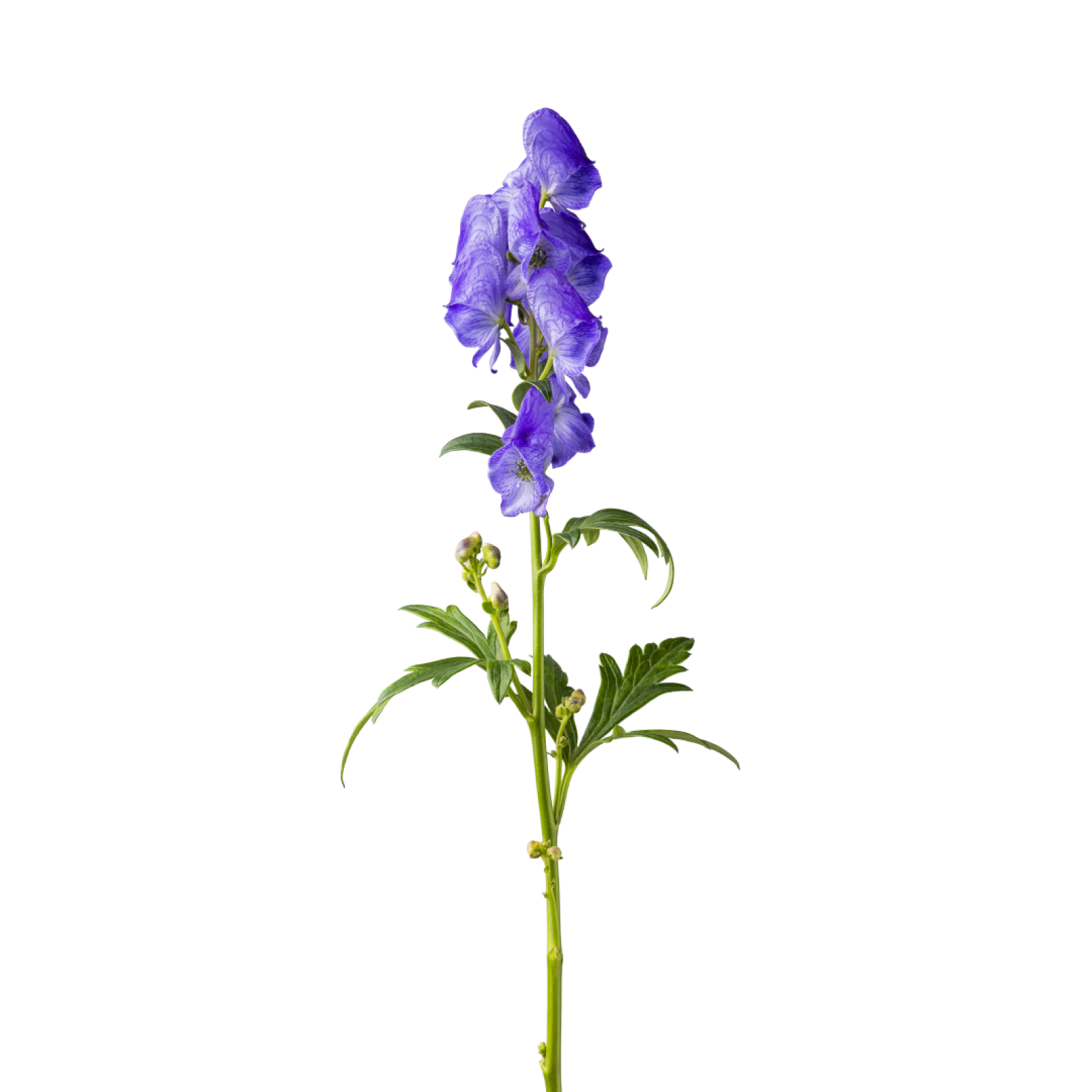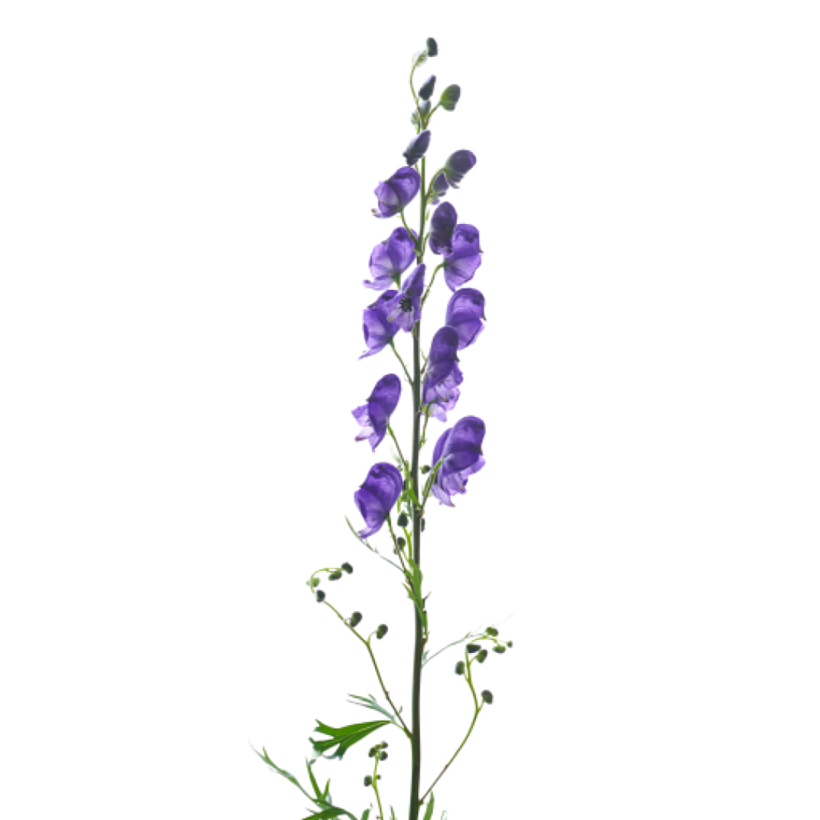 Con su distintiva forma de flor, los pétalos individuales tienen forma de capucha de monje. Con sus bellos colores blanco y azul/morado, el Aconitum añade un poderoso elemento a cualquier ambiente.