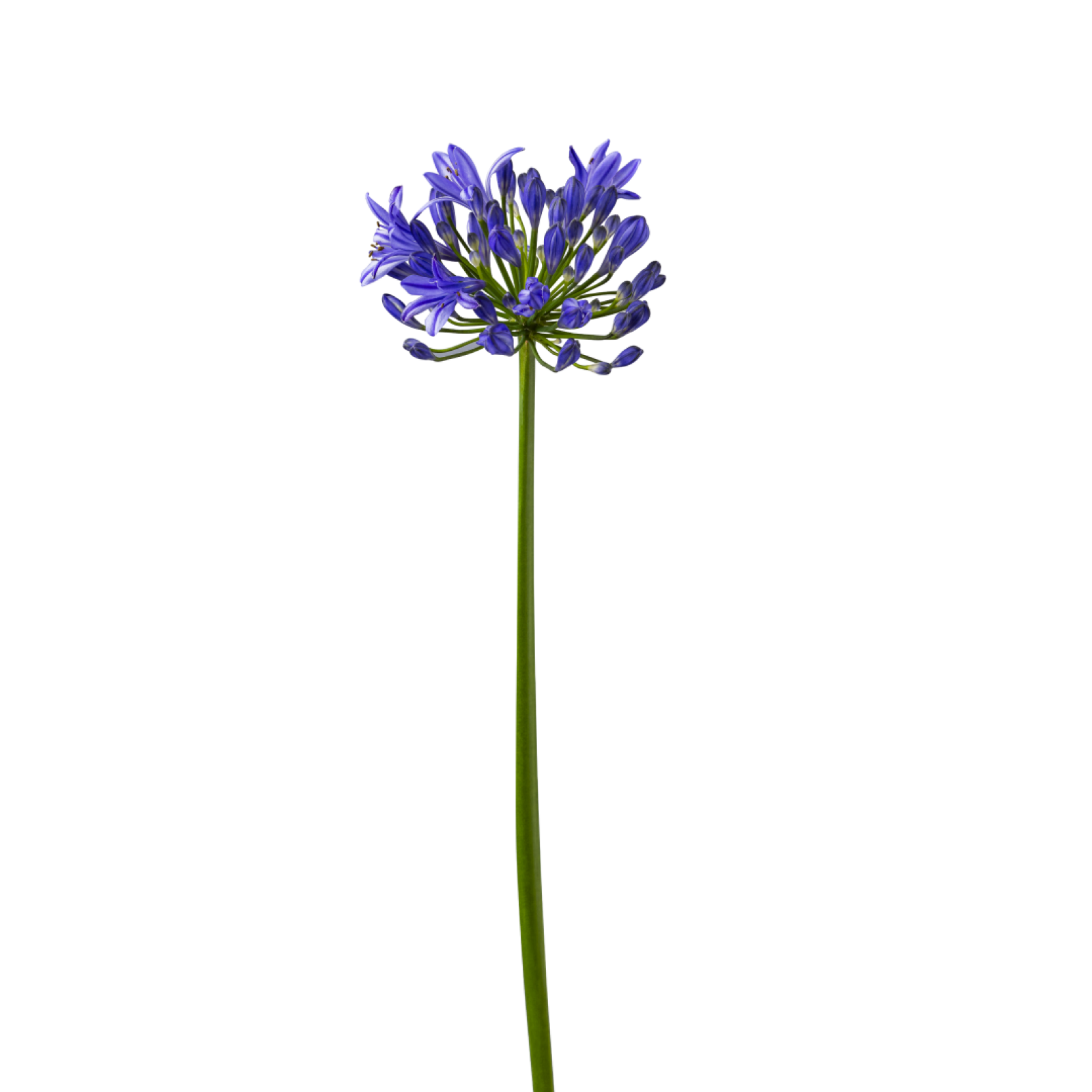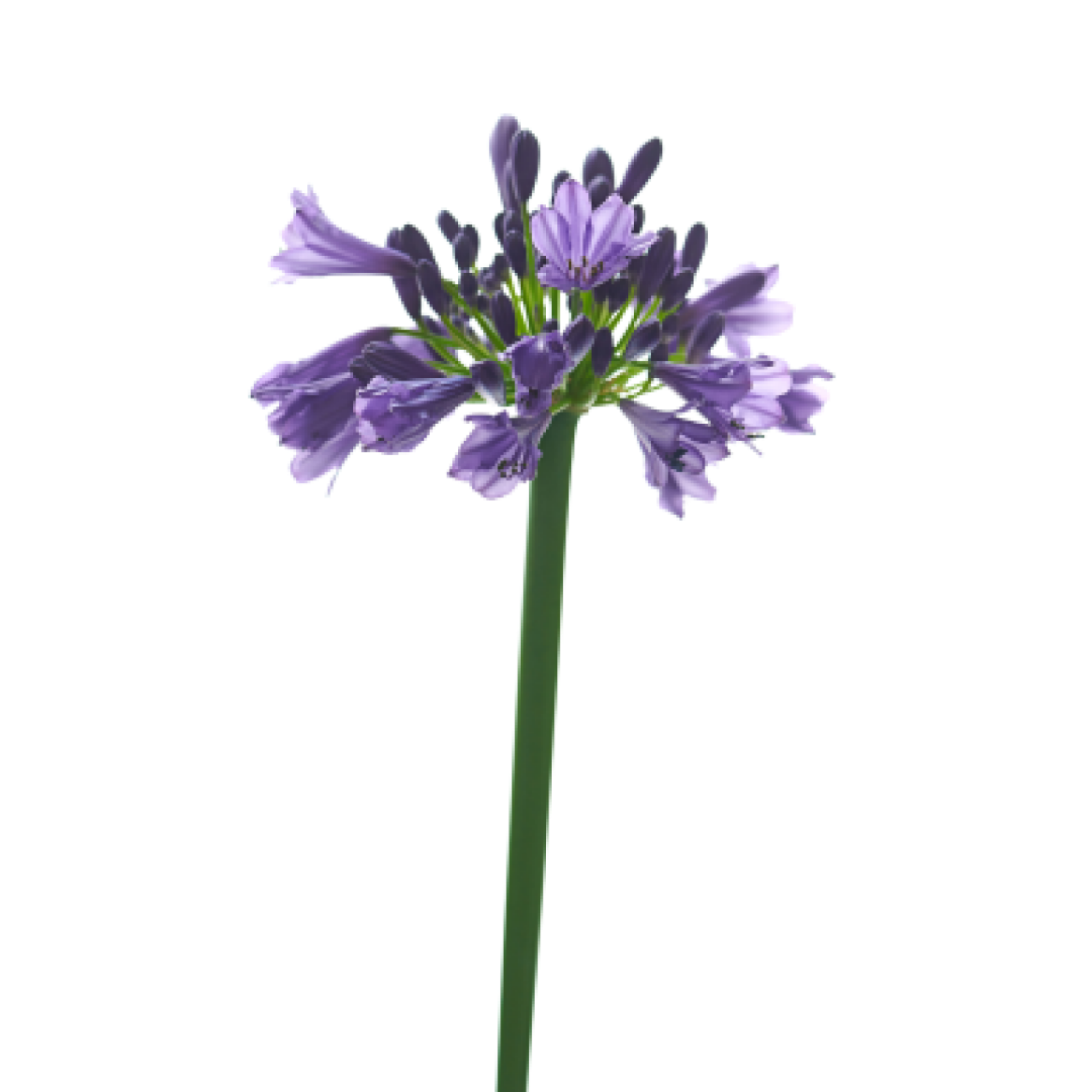 El Agapanthus suele ser de color azul claro o morado. Otras variedades incluyen flores blancas, rosas o rayadas.