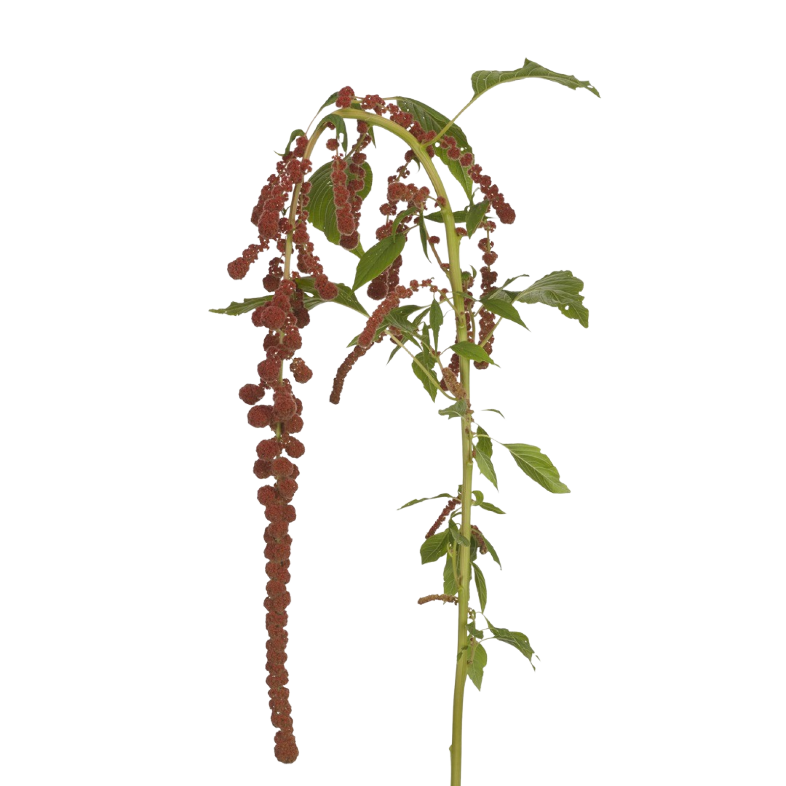 El Amaranthus tiene largas y llamativas espigas florales que añaden un efecto dramático a los ramos. Las espigas florales tienen una textura exuberante, parecida a la del ciruelo.