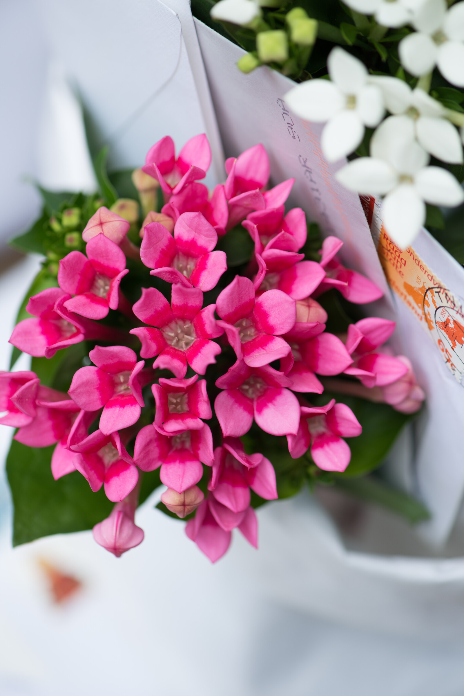La bouvardia está disponible en distintos colores, como blanco, rosa, rojo y salmón.