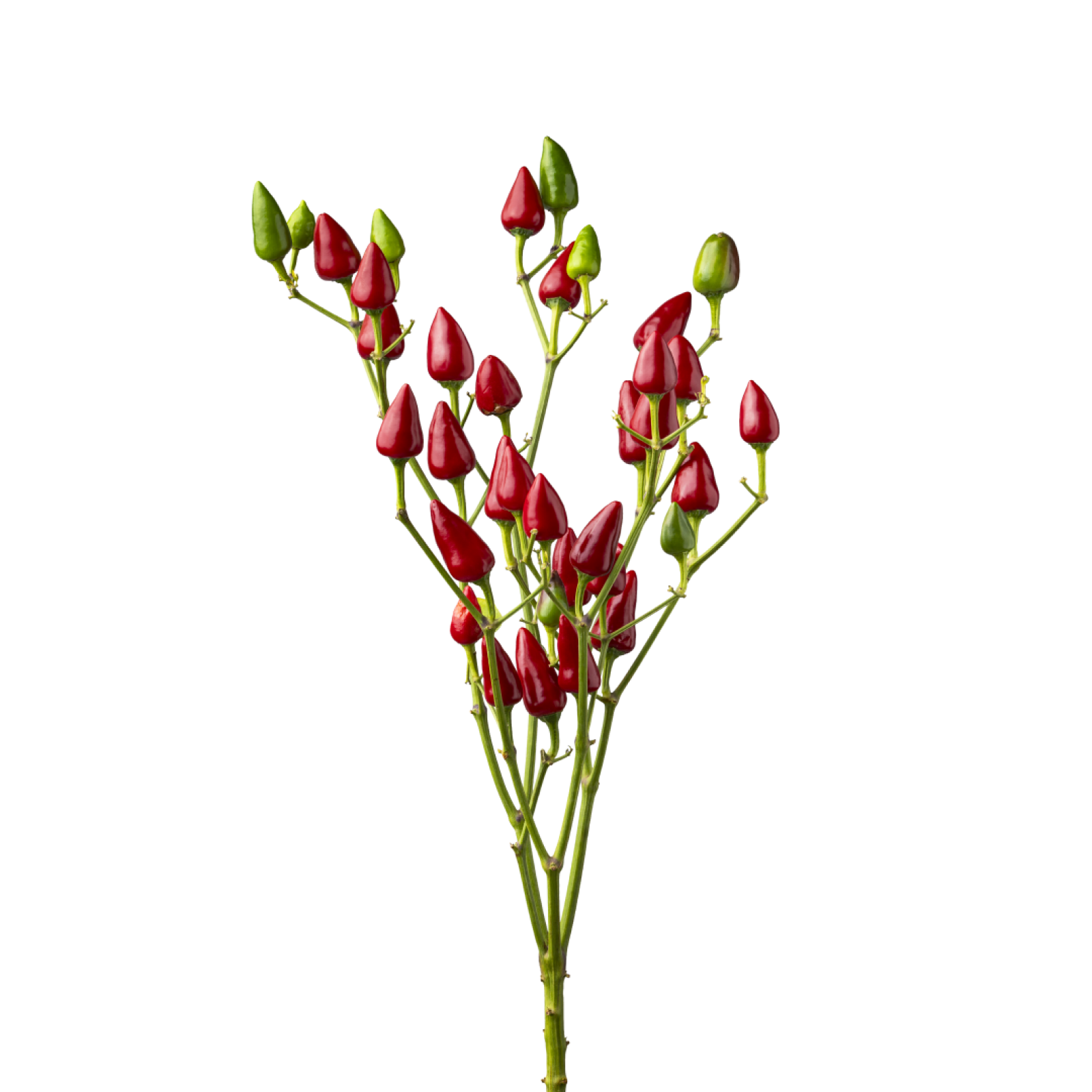 Capsicum es más conocido como pimiento o pimienta. En Navidad y en los ramos de otoño, estas ramas añaden un elemento robusto .