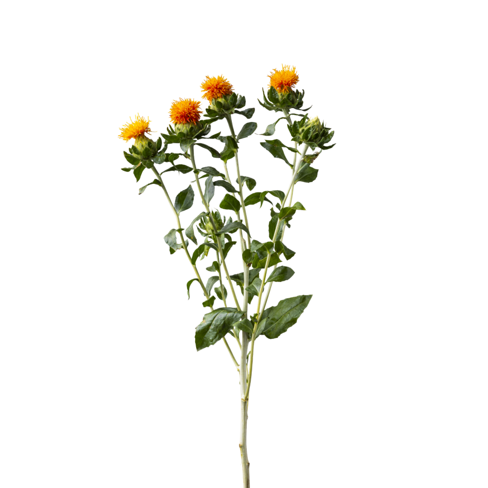Con su llamativa textura espinosa y sus vibrantes cabezas florales, el Carthamus atrae todas las miradas en cualquier ramo.