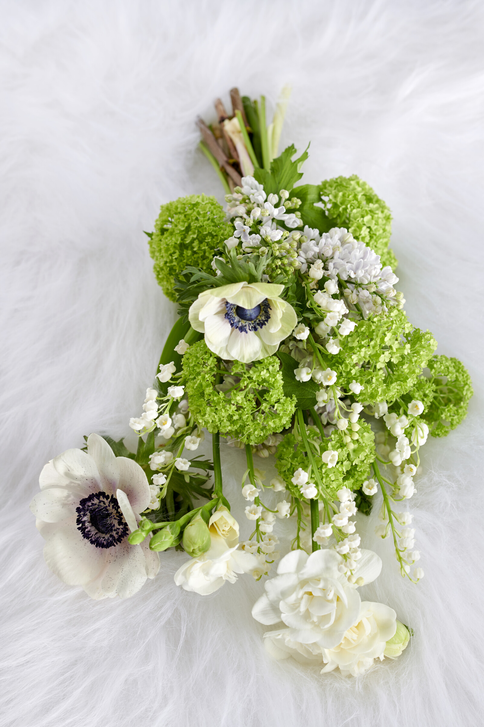 La Convallaria es predominantemente blanca, con toques ocasionales de crema. Las flores desprenden pureza y elegancia.