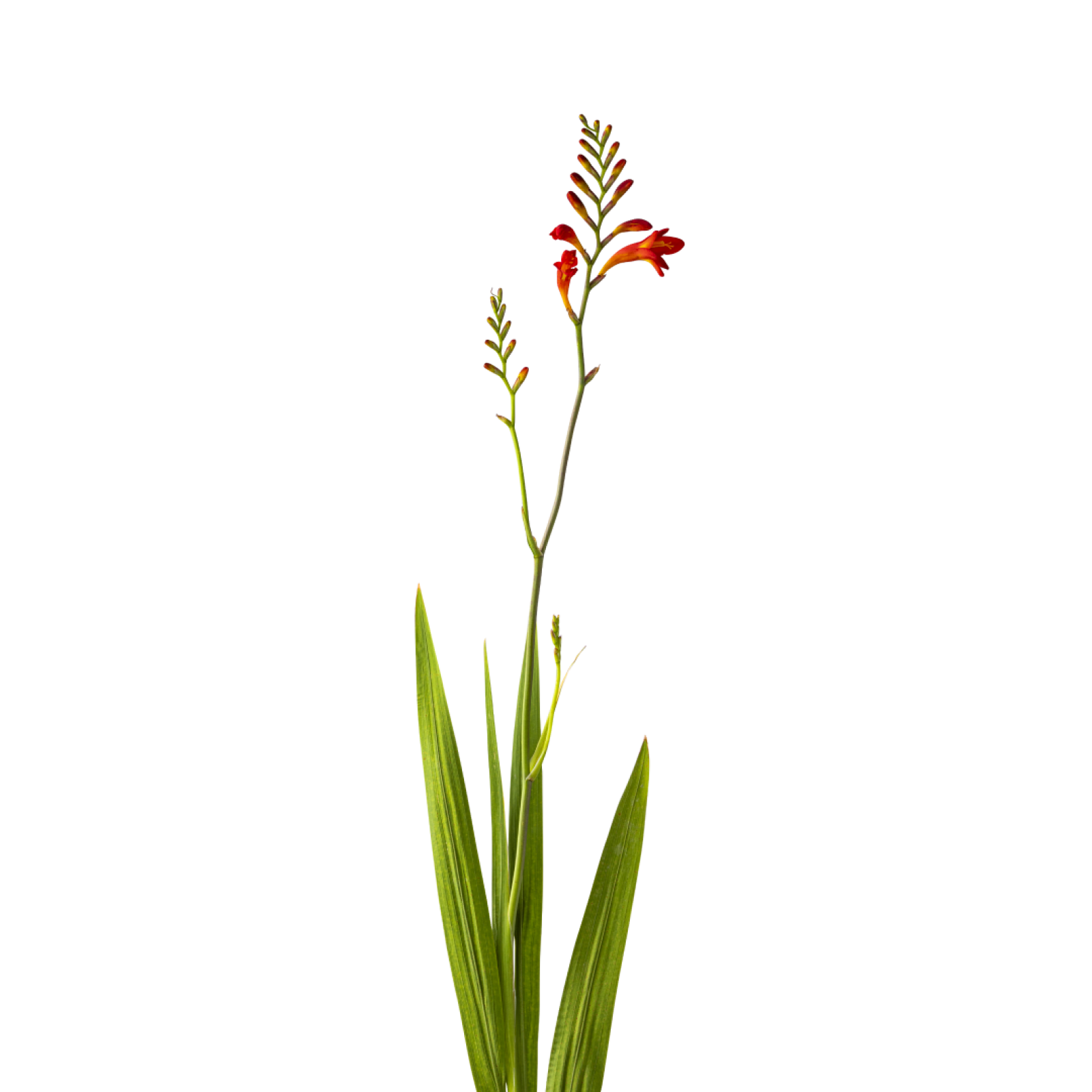 La Crocosmia simboliza la pasión, la energía y la alegría por sus llamativos colores y formas.