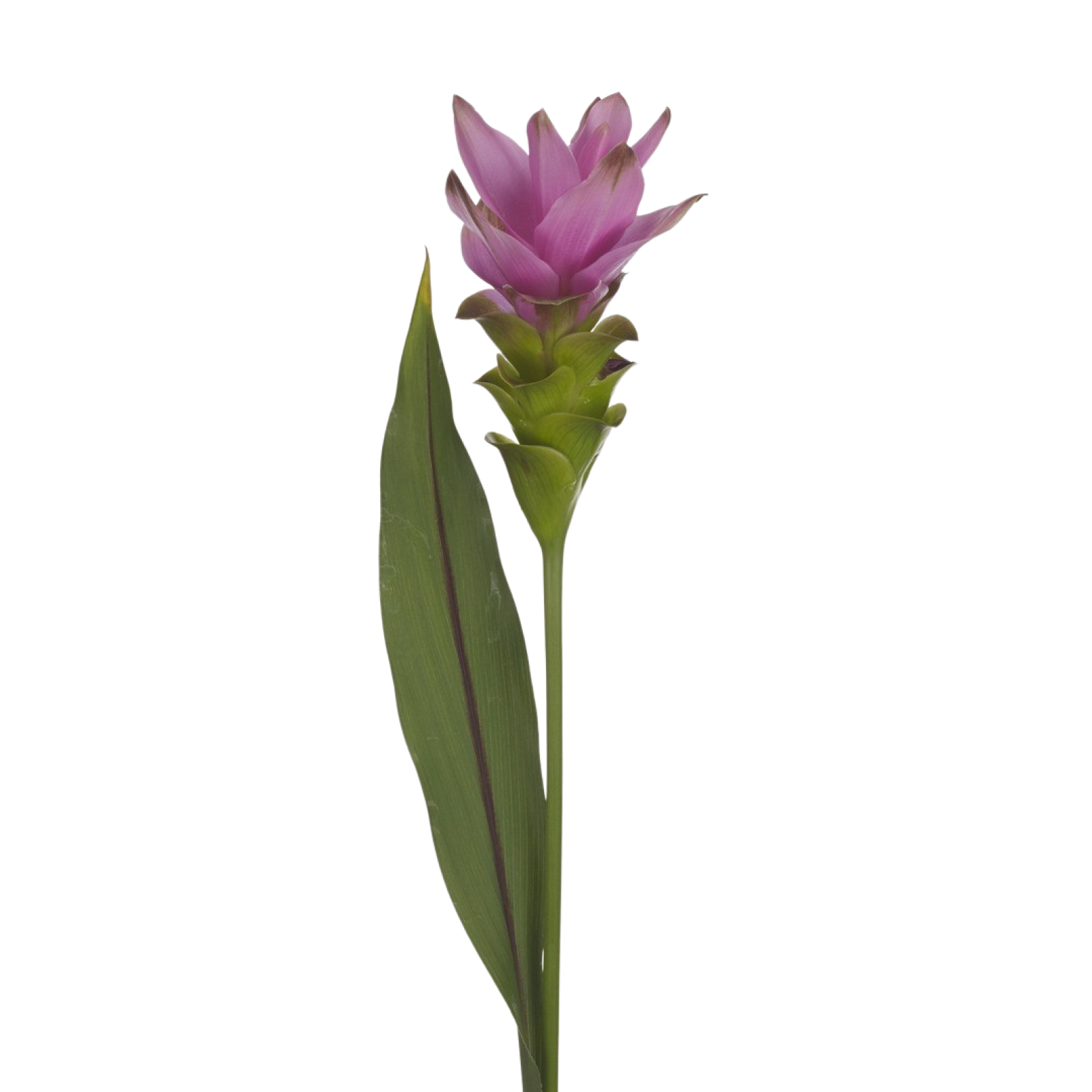 La cúrcuma es una flor llamativa de aspecto exótico. Su color rosa/lila aporta un elemento alegre y festivo a un ramo o arreglo.