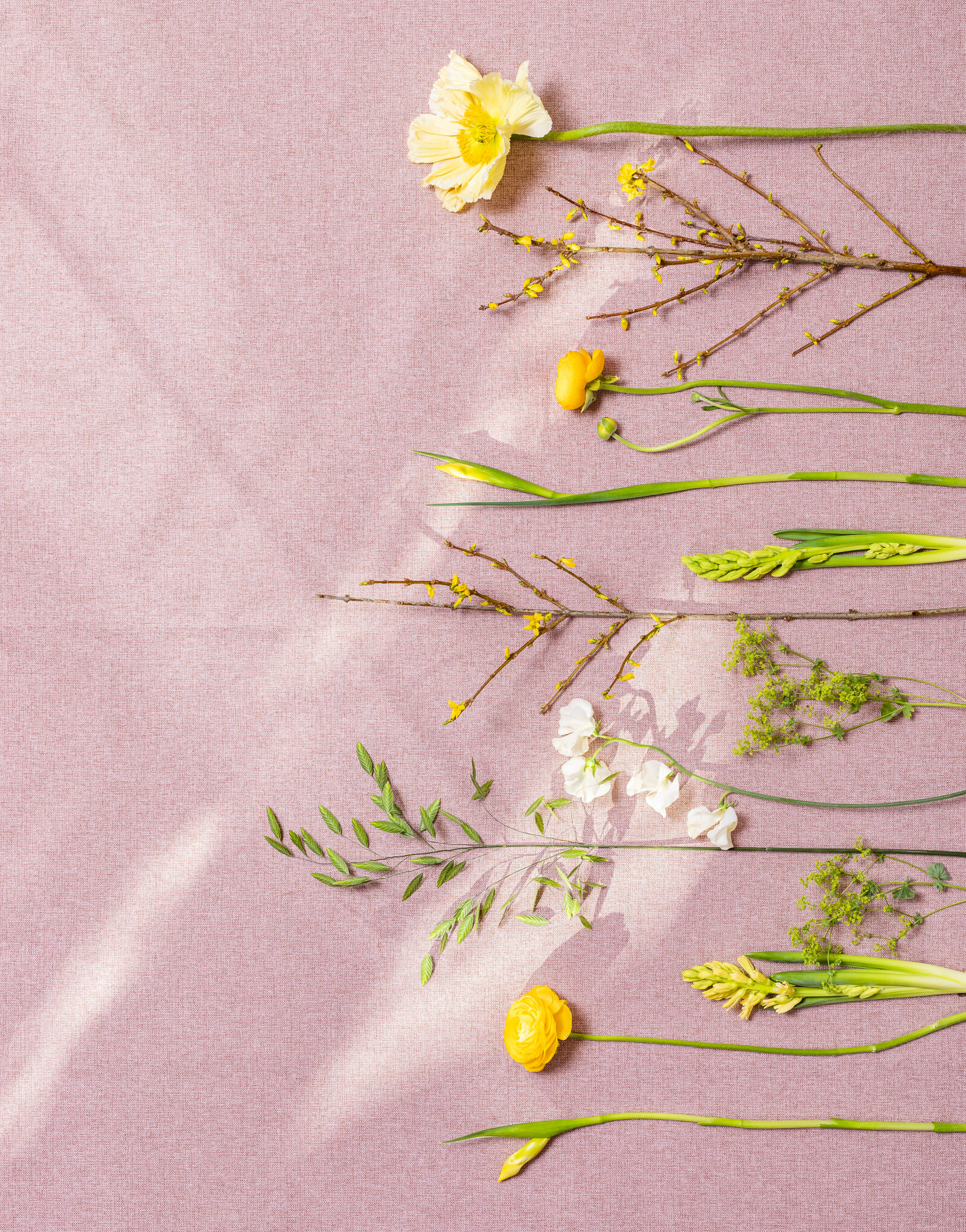 La forsitia es una hermosa rama en flor que se utiliza a menudo en primavera y en Pascua. Puede encontrar más inspiración aquí.