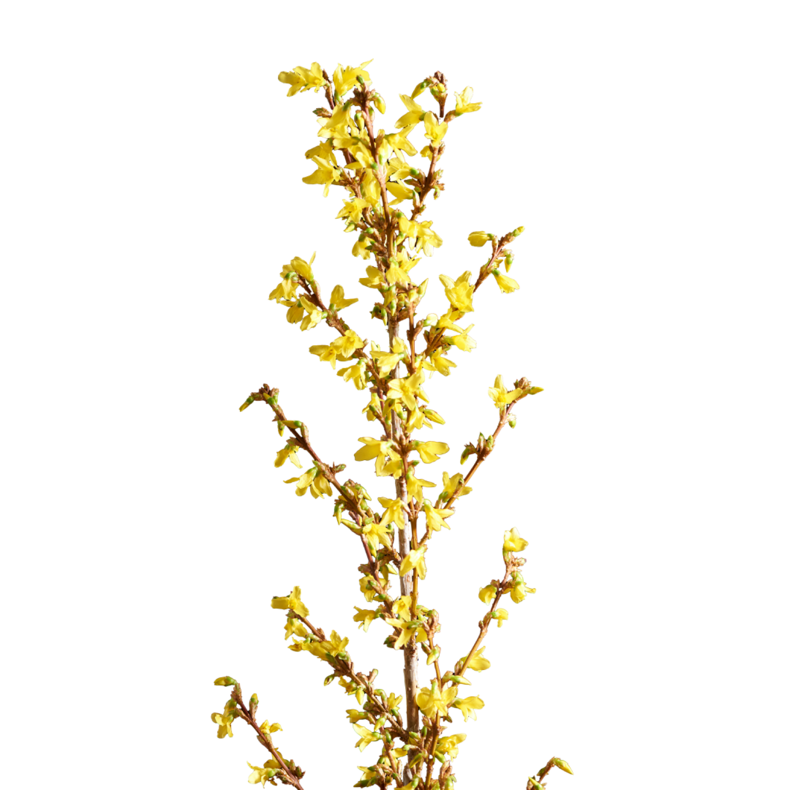 Dé la bienvenida a la primavera con la Forsythia, una rama radiante que celebra la estación de la renovación con profusión de flores brillantes y doradas. Uno de los primeros arbustos en florecer en primavera, la Forsythia, también conocida como campanilla china, devuelve la alegría tras un invierno estéril.