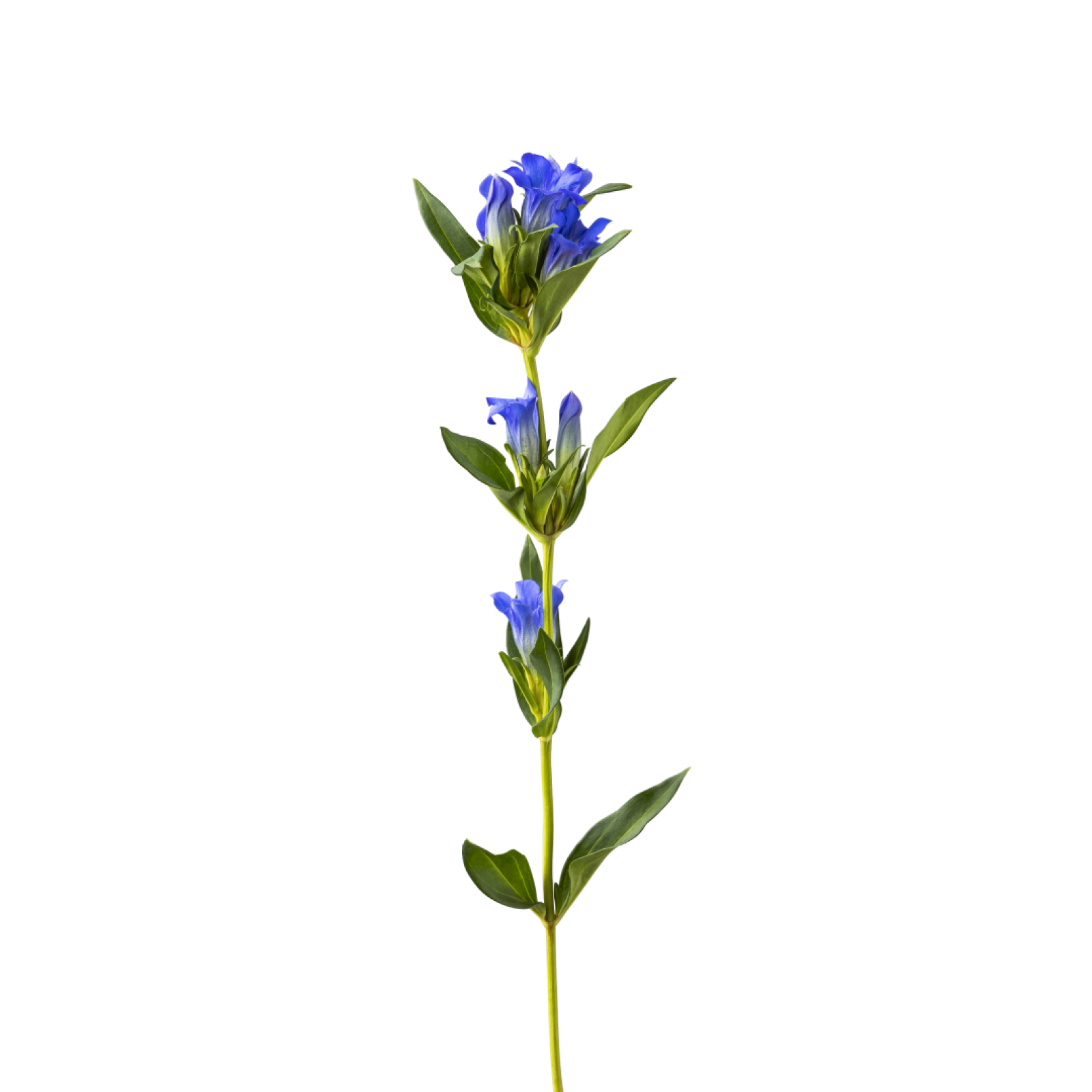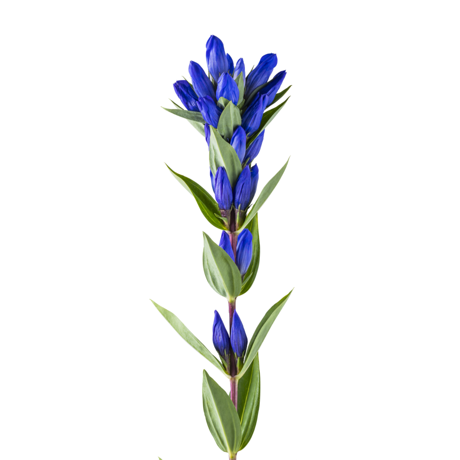 Los profundos tonos azul, púrpura y violeta de la Gentiana atraen inmediatamente la atención en un ramo. En cantidades limitadas, Gentiana también está disponible en rosa, blanco y lavanda.