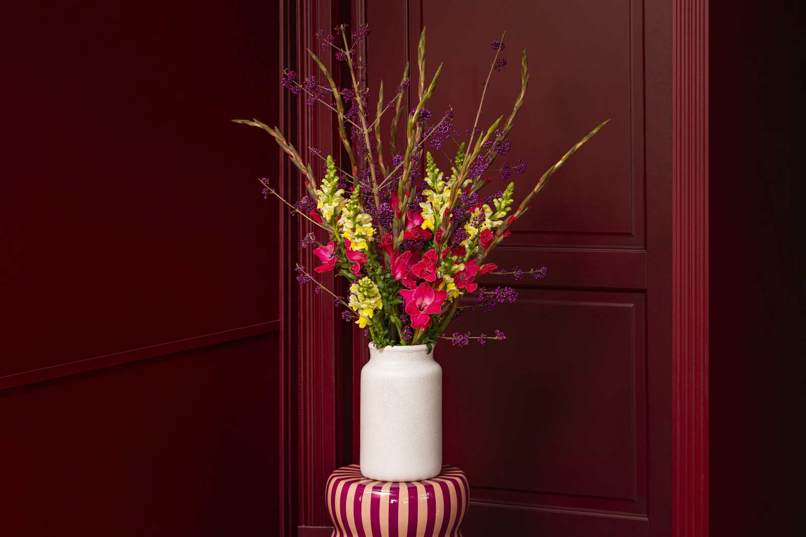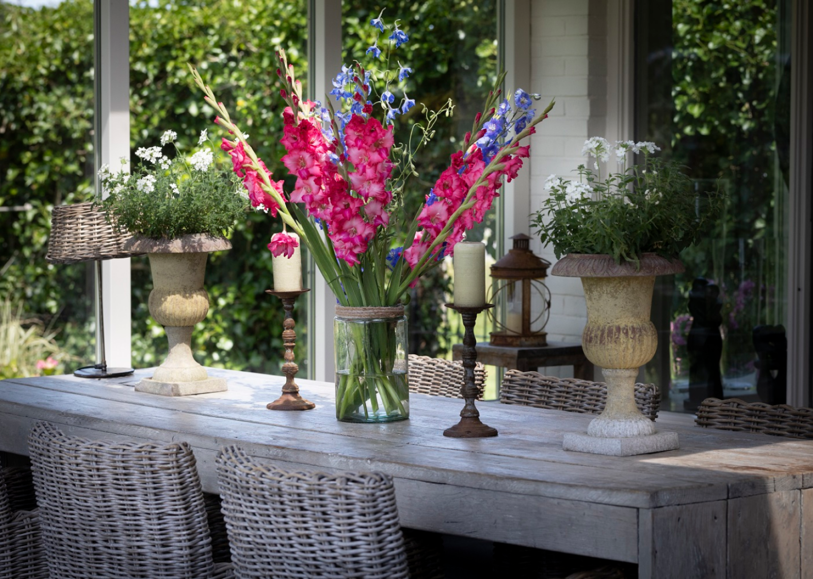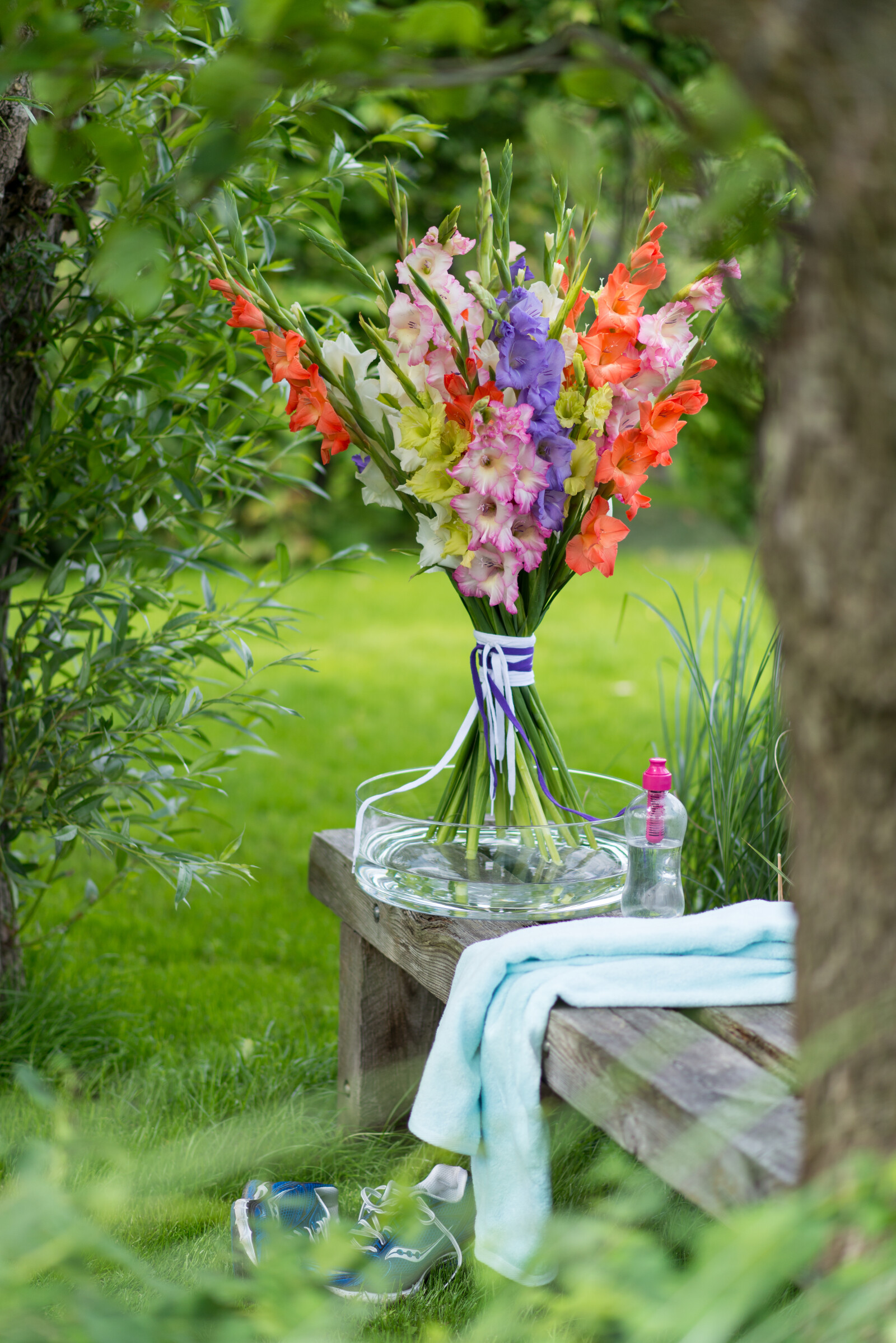 Con sus largos tallos terminados en coloridas flores, el gladiolo llama inmediatamente la atención.