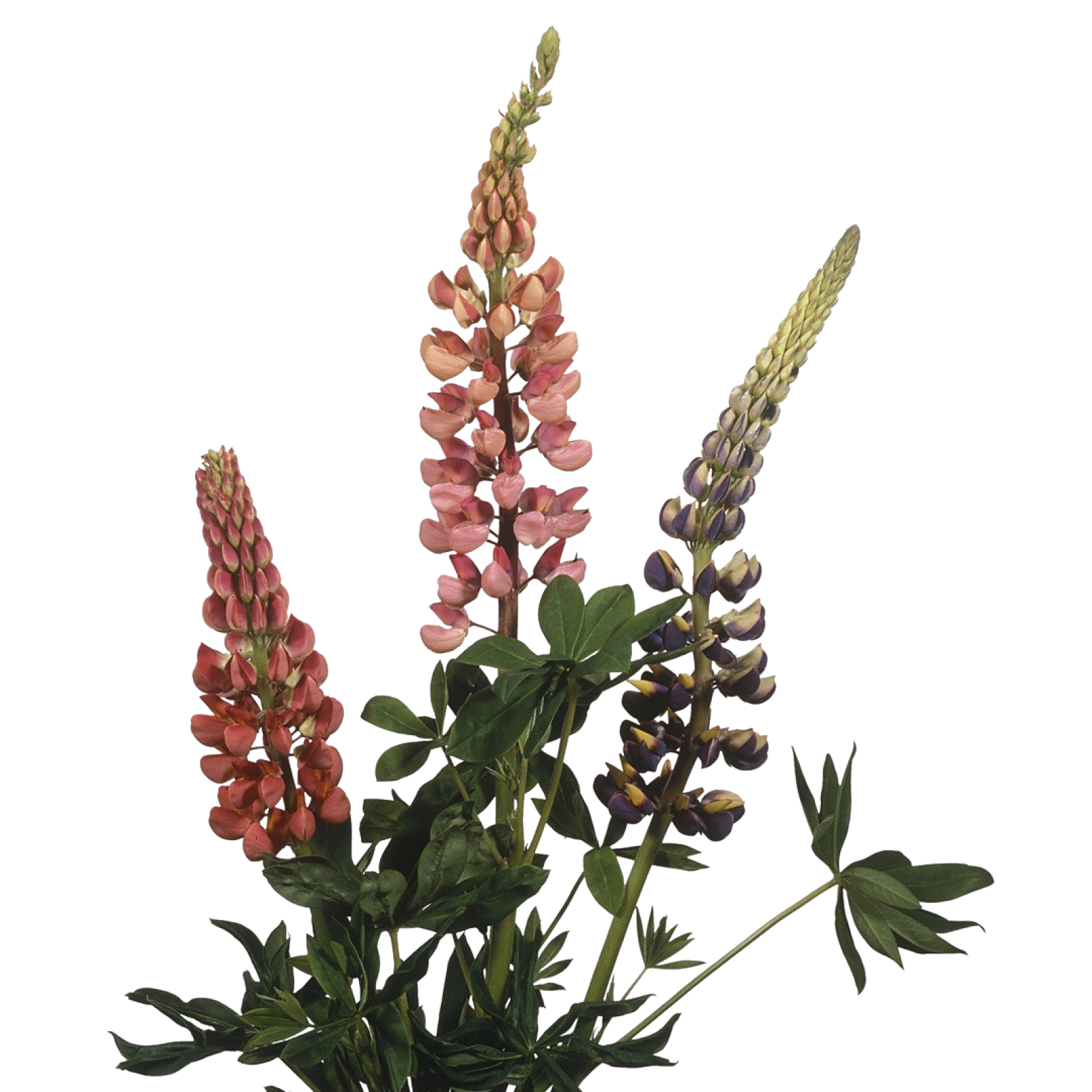 El Lupinus, también conocido como altramuz, es una auténtica flor de verano Esta planta perenne tiene flores llamativas en varios tonos, desde el rosa brillante hasta el azul intenso e incluso el amarillo soleado. El Lupinus atrae todas las miradas en cualquier ramo.