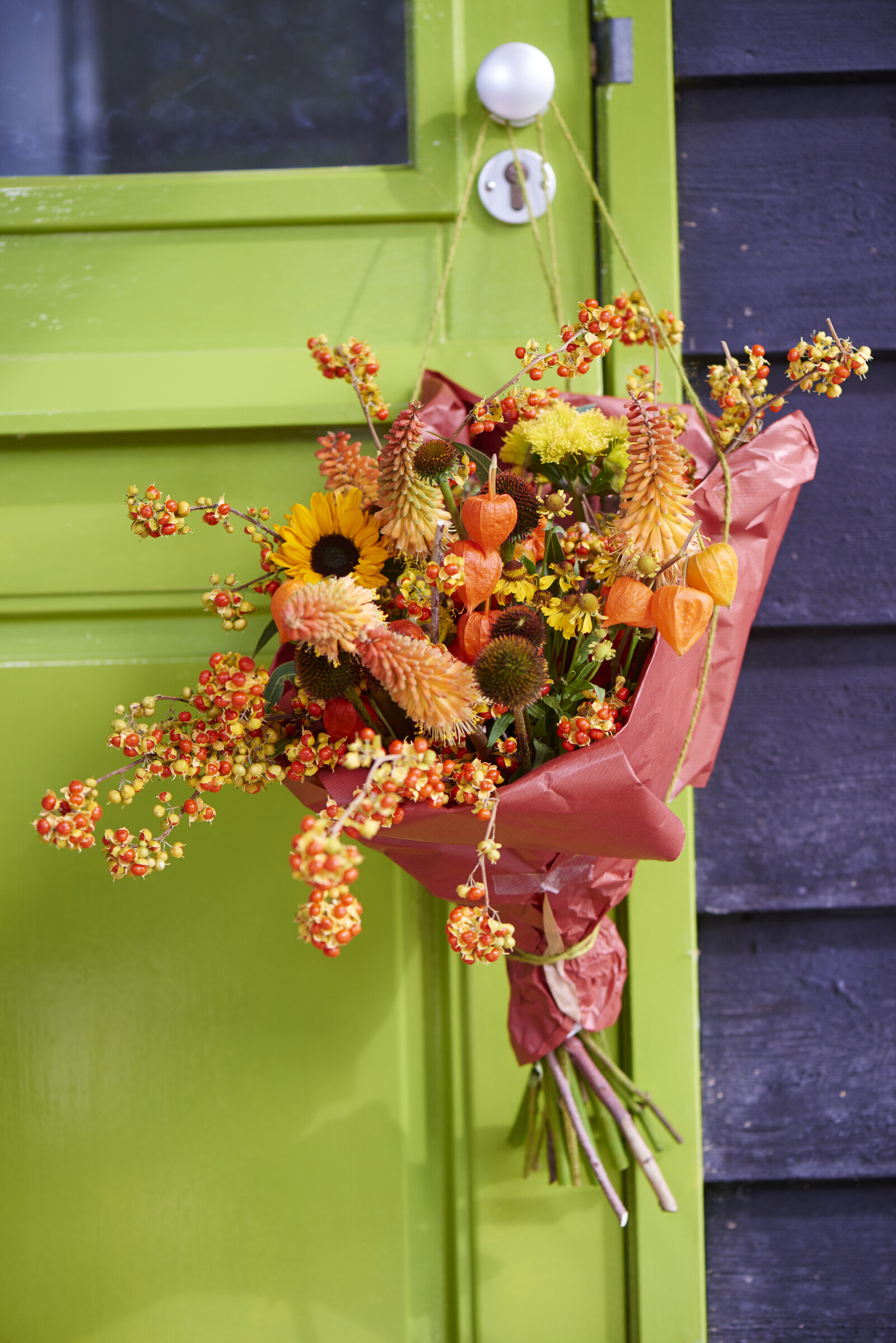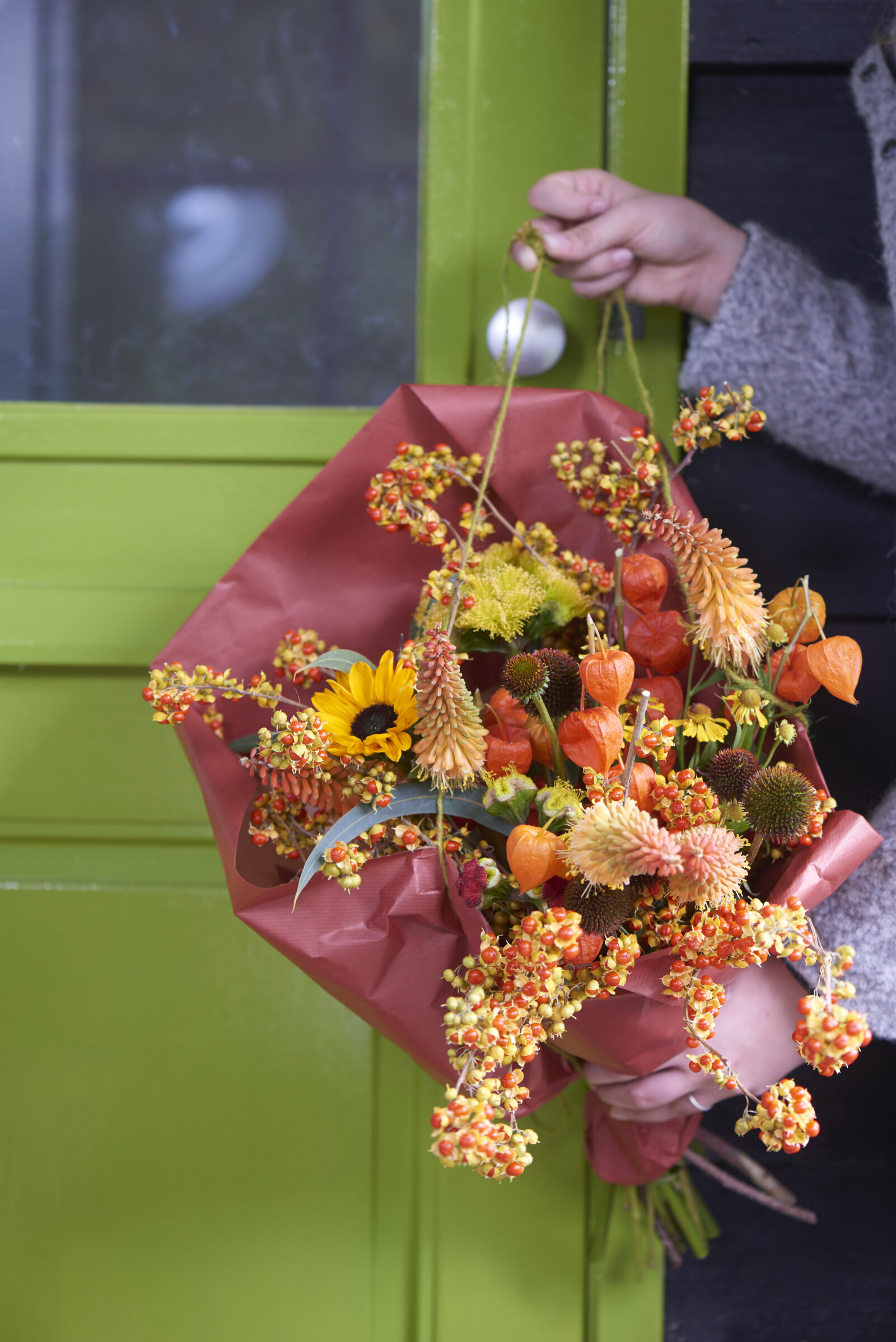 Con sus llamativos farolillos de papel naranja, la Physalis añade un elemento otoñal a los arreglos florales, tanto frescos como secos.
