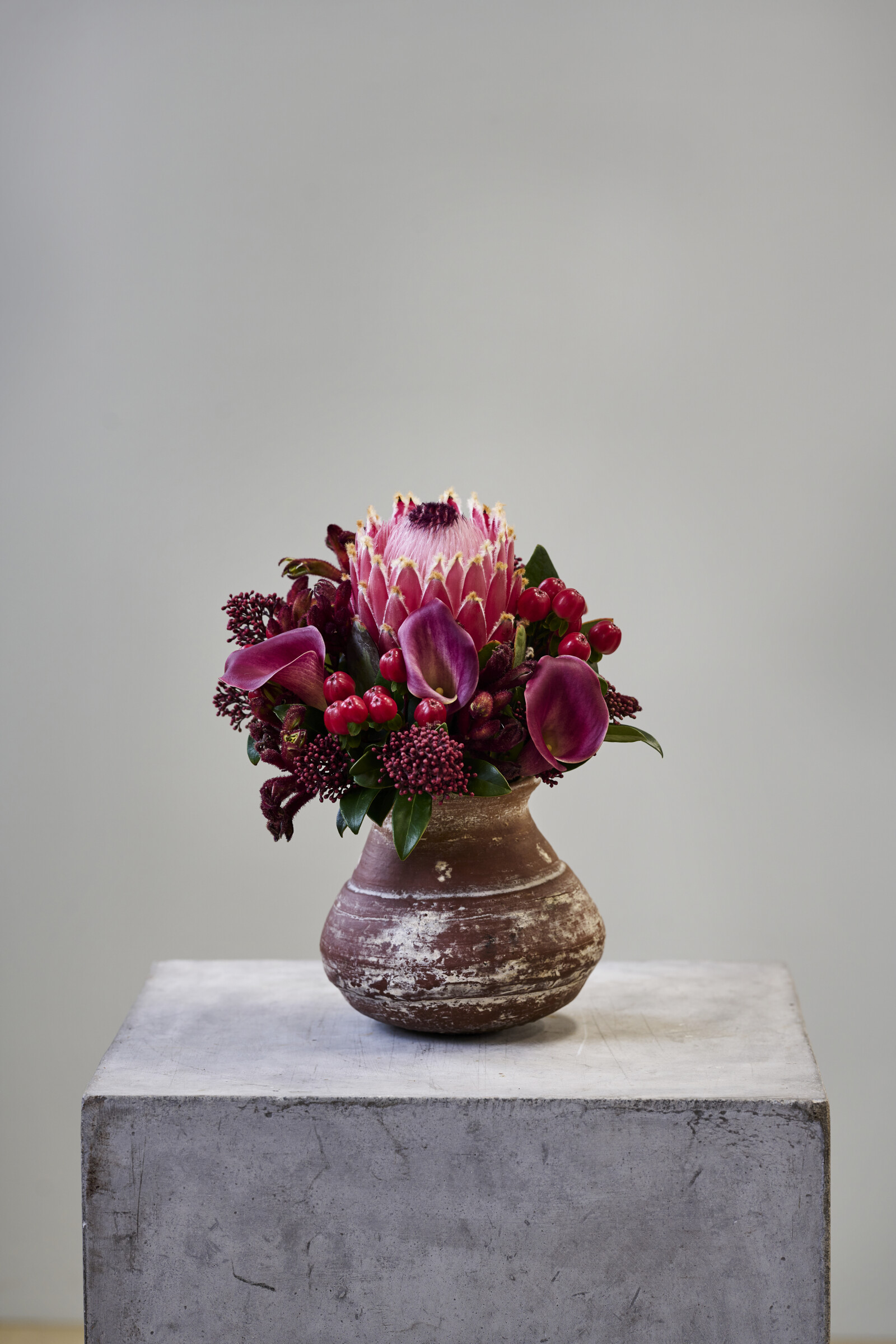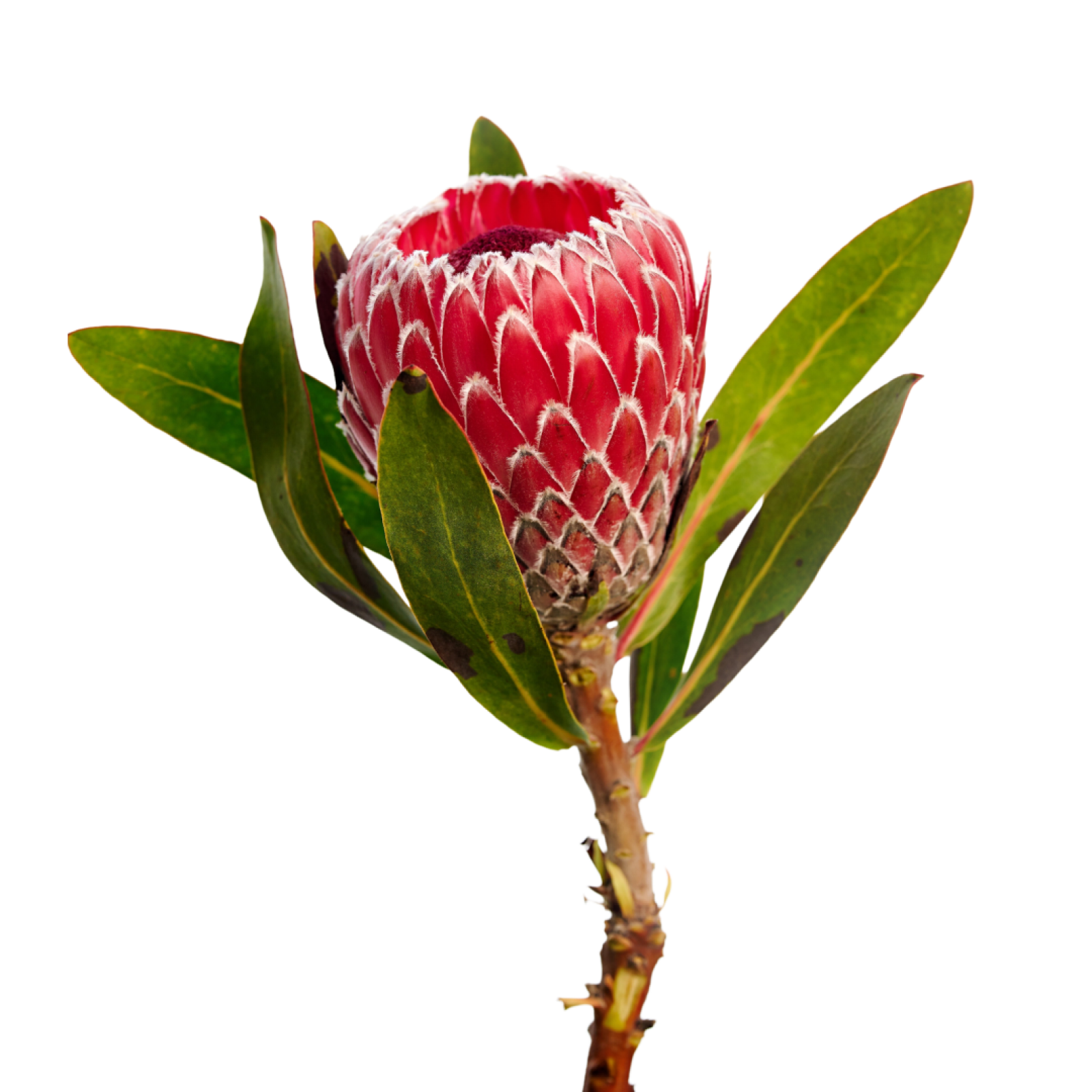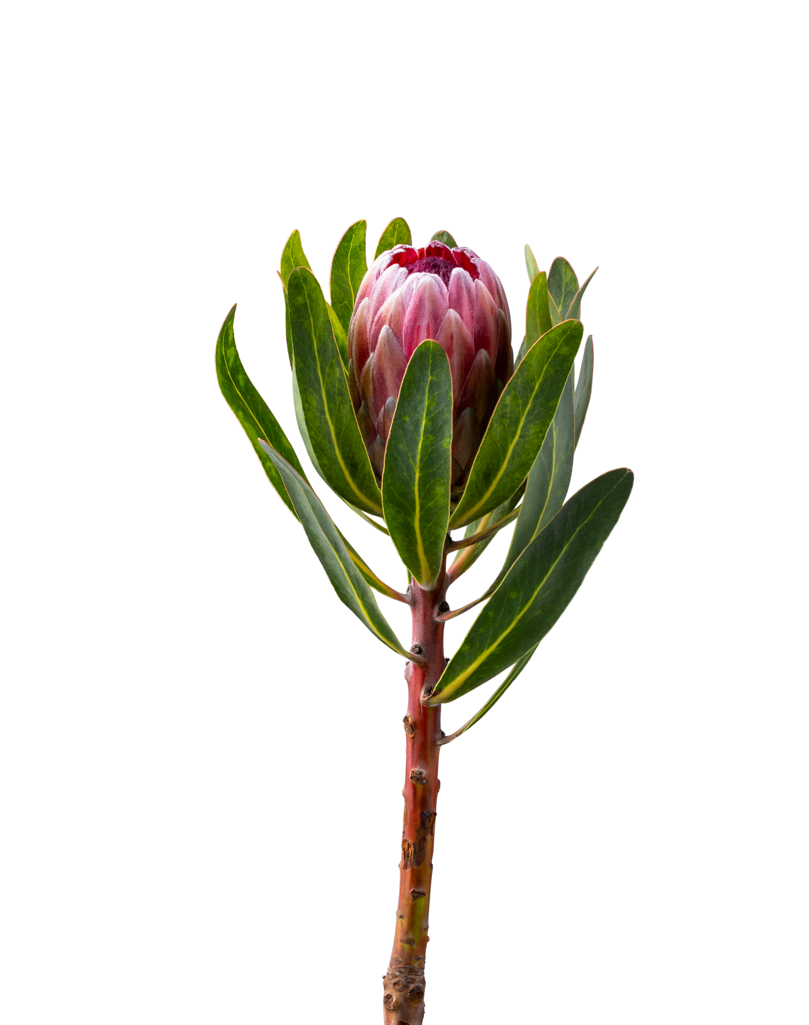 La Protea atrae todas las miradas en cualquier ramo o arreglo. Con sus formas únicas y sus llamativas inflorescencias, la Protea añade un elemento exótico e impresionante.