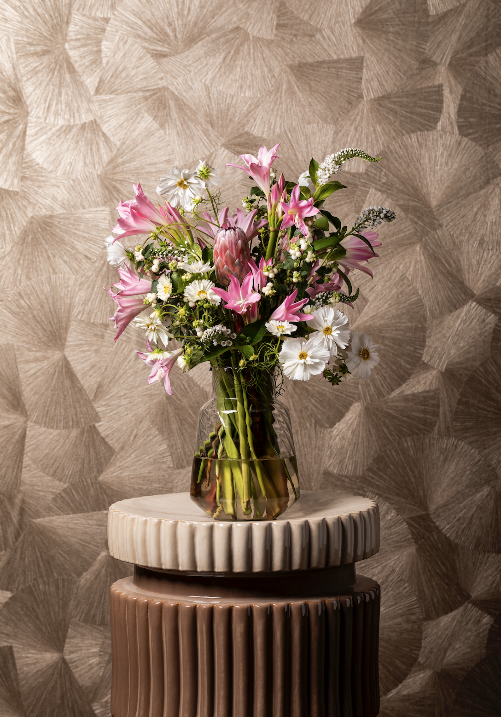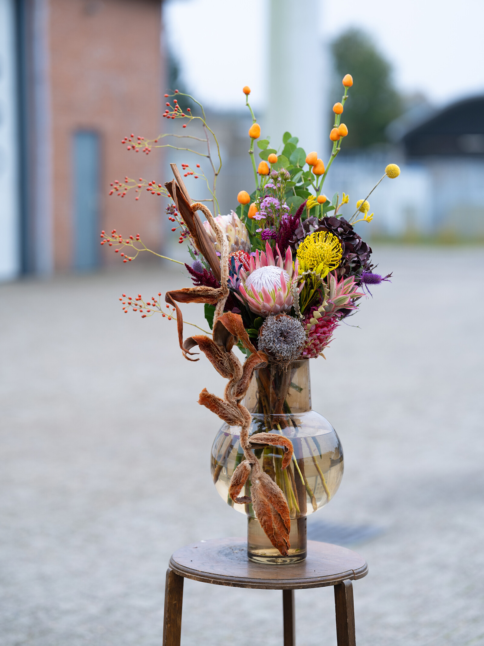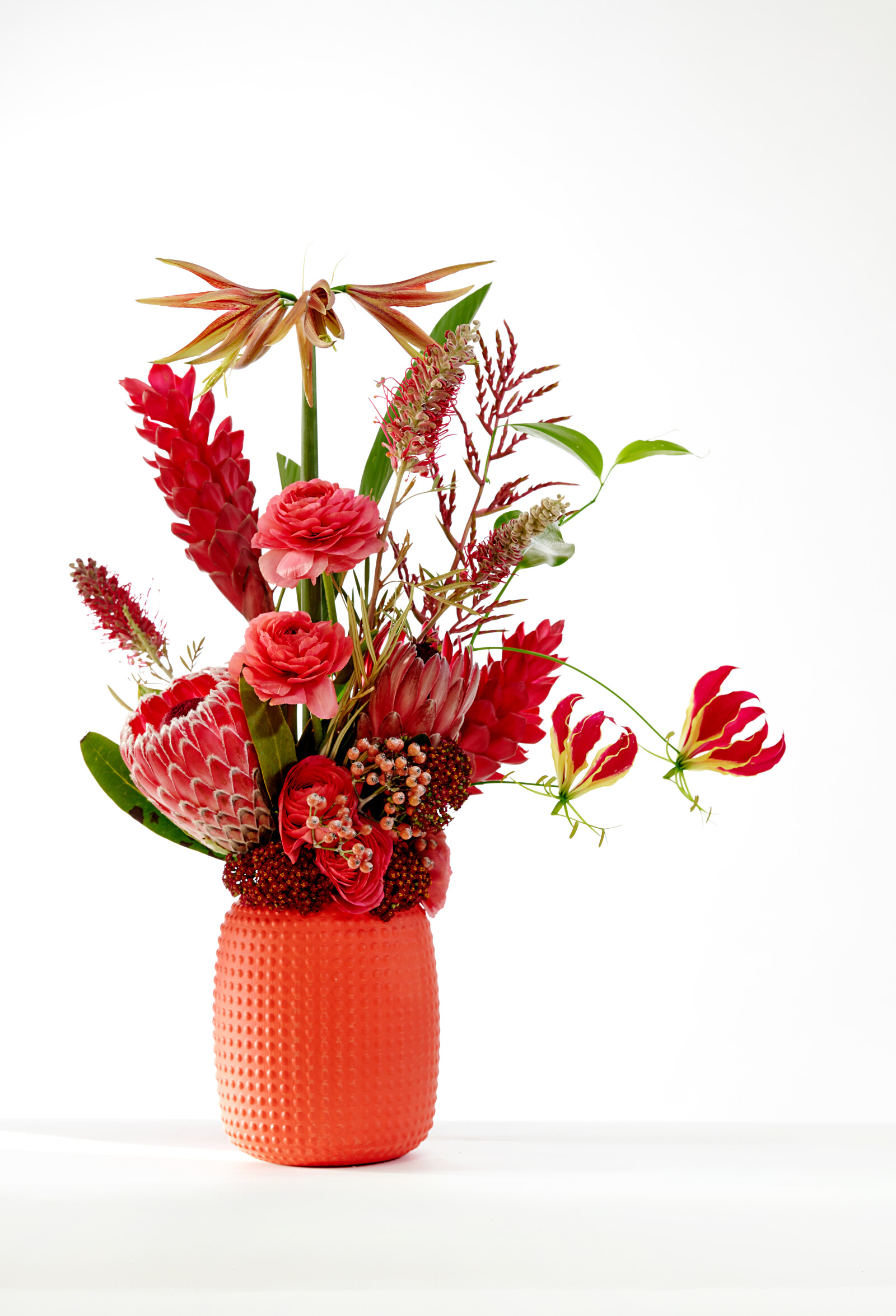 La Protea atrae todas las miradas en cualquier ramo o arreglo. Con sus formas únicas y sus llamativas inflorescencias, la Protea añade un elemento exótico e impresionante.