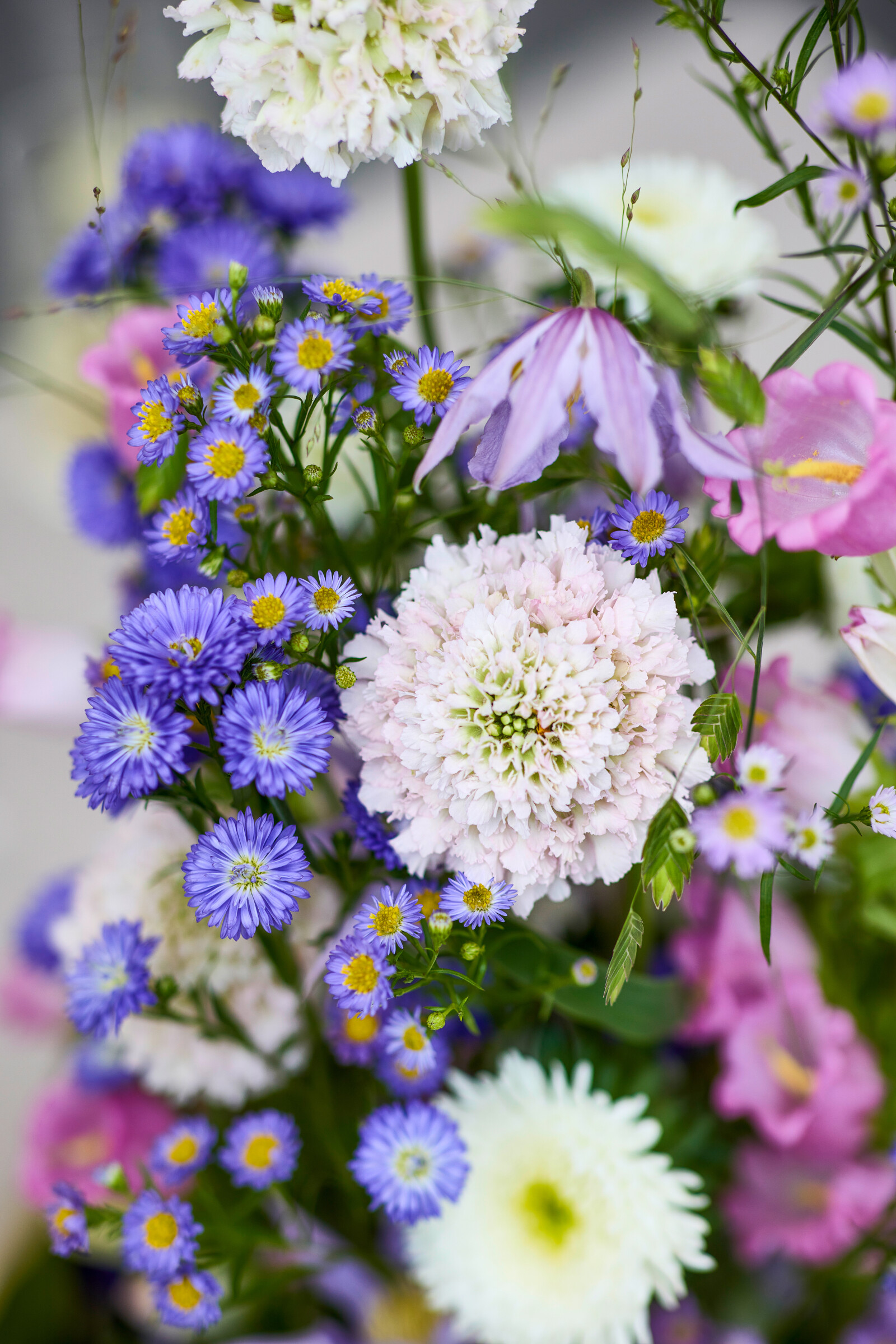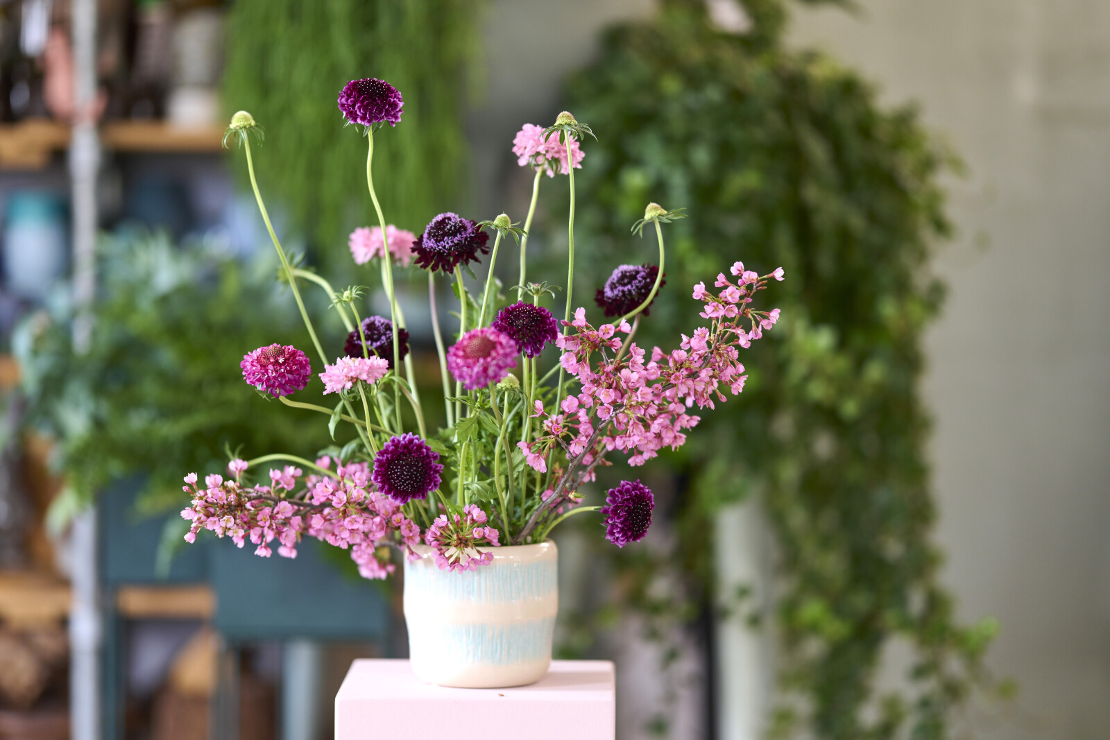 La Scabiosa es una flor característica que se utiliza a menudo en ramos o como ramo único. Puede encontrar más inspiración aquí.