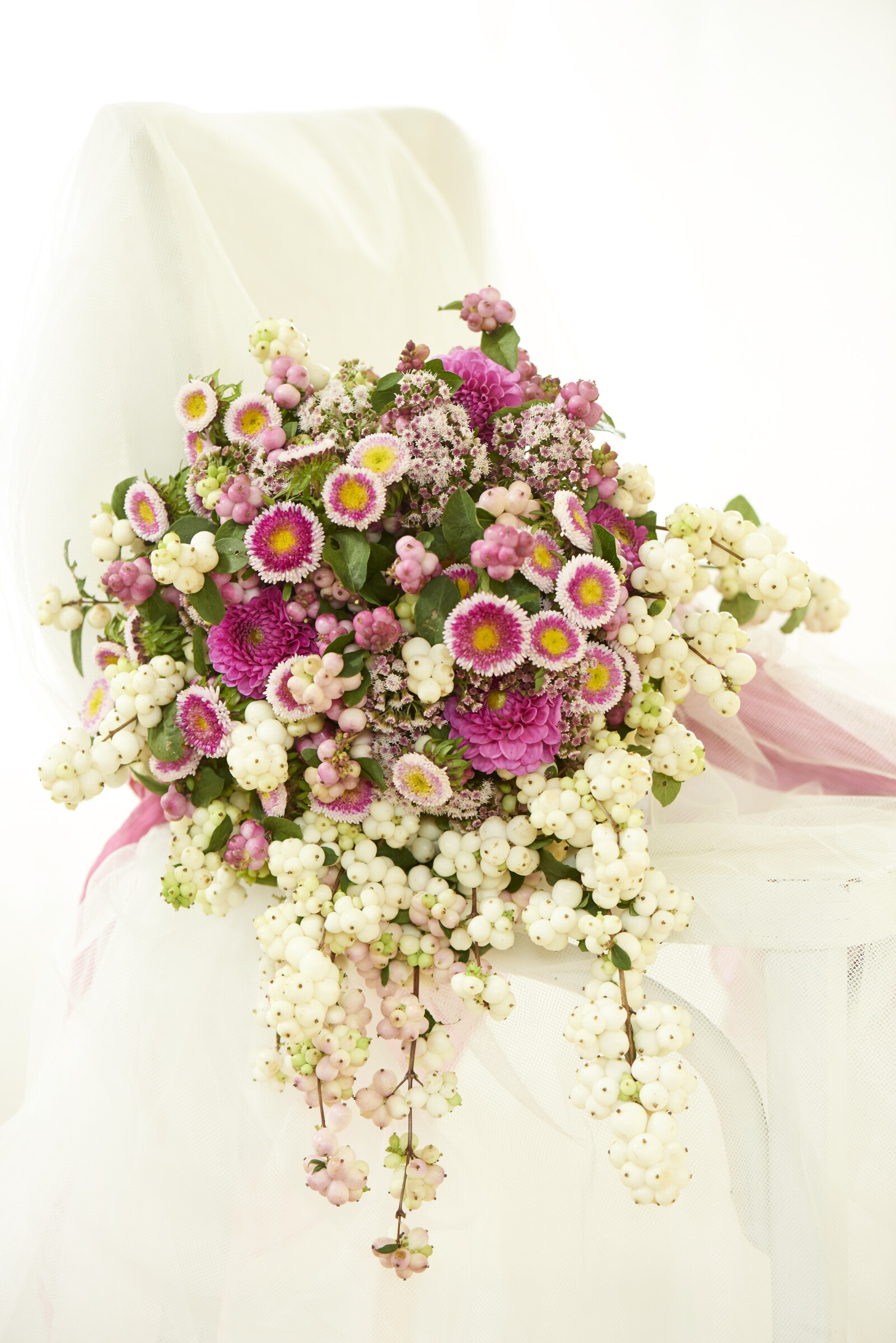 El Symphoricarpos añade un efecto especial a su ramo gracias a sus bayas blancas o rosas y a su hábito de crecimiento denso.