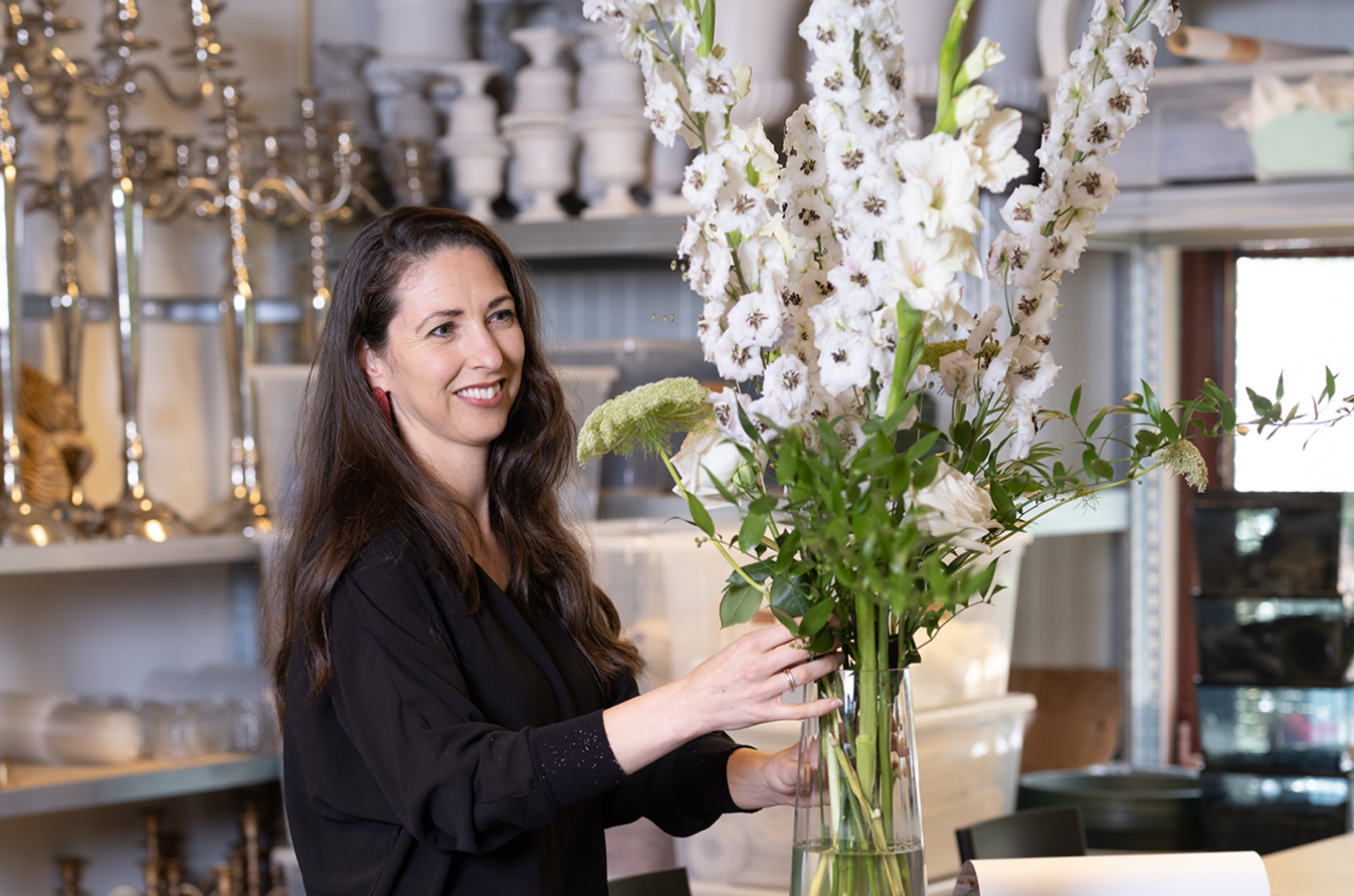 "De todos modos, la primera reunión con mis novios tiene lugar cara a cara. Bebemos té en una copa de vino y charlamos informalmente sobre el aspecto y el ambiente del gran día. A partir de ahí, les hago una oferta. Si uno de ellos no es de los Países Bajos, siempre pregunto por el origen. Me gusta incorporar flores del país de origen al tema de la boda. Esto siempre es muy apreciado. También pregunto por las flores favoritas de los miembros de la familia; también pueden desempeñar un papel importante durante un día así. A menudo visito a los cultivadores para contar al cliente la historia de la flor y su origen. A los novios siempre les gusta eso