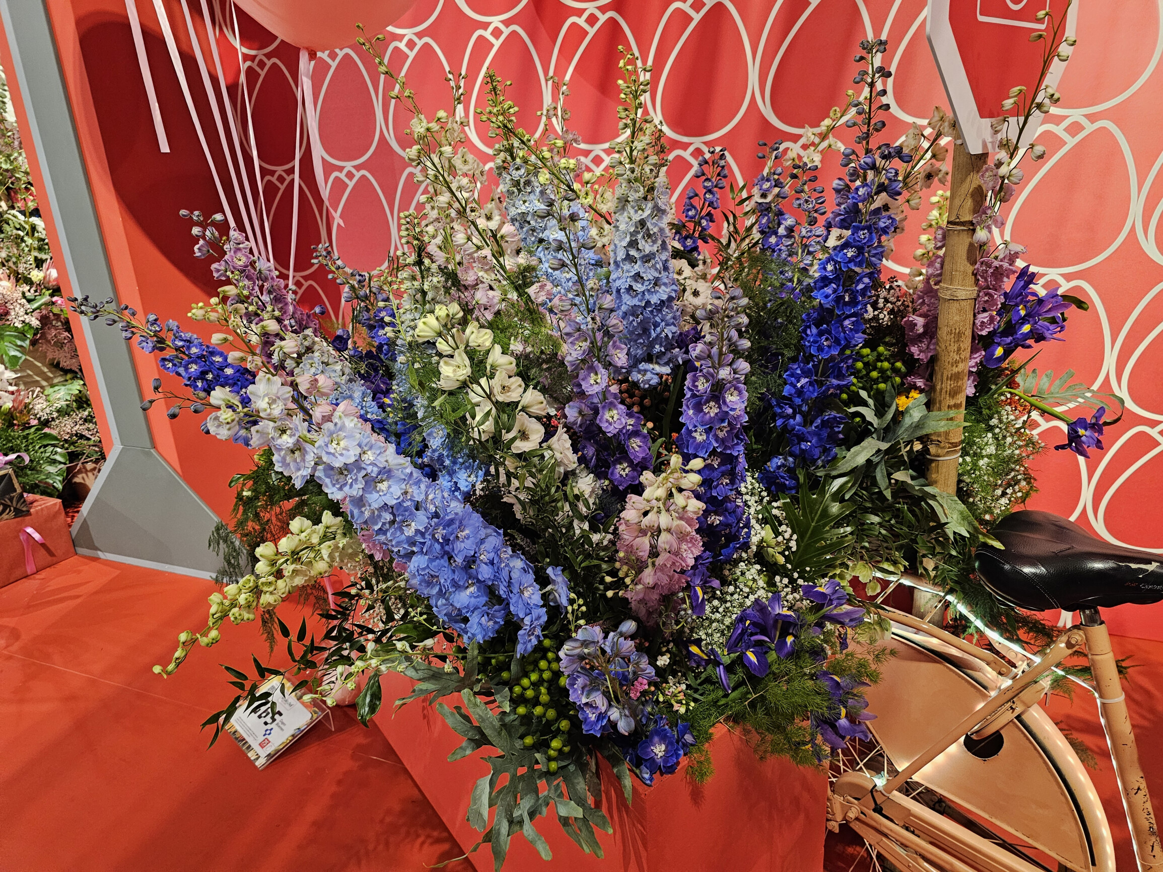 En el Pabellón Oranje Nassau de Keukenhof se pueden admirar hasta el miércoles las siguientes flores: diversas variedades de Hypericum, Veronica Smart Wave, Eupatorium Lucky Pink, Delphinium de una y dos flores, Gypsophila 'Polar Bear', Iris Blue Magic, Matricaria (manzanilla), Astrantia Billion Stars, Scabiosa fr Vanilla Scoop, Helleborus Magnific Bells y cuatro colores de Phlox. Todo ello complementado con plantas decorativas como Euonymus japonicus 'White Spire', Monster Leaf, Philodendron Xanadu, Cyrtomium falcatum y varias especies de espárragos.